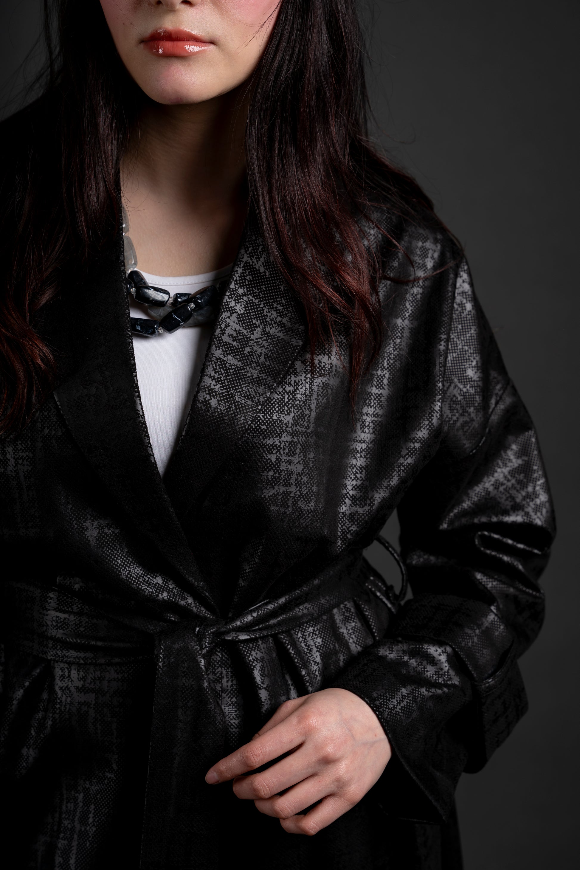 Elegant suede light coat with a sleek, leather-like sheen — effortlessly adds sophistication and a unique edge to any look.